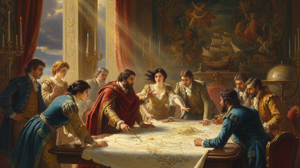 An illustration of a group of people discussing on where to go, and everyone contributing